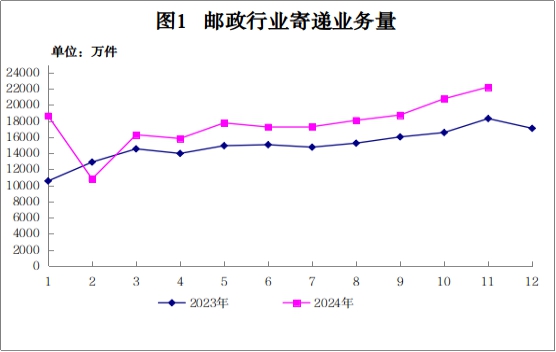 1-11月,邮政行业寄递业务量累计完成19.36亿件,同比增长18.95%。其中,博彩平台-十大博彩平台量累计完成13.76亿件(注1),同比增长27.82%(按可比口径计算,下同)。