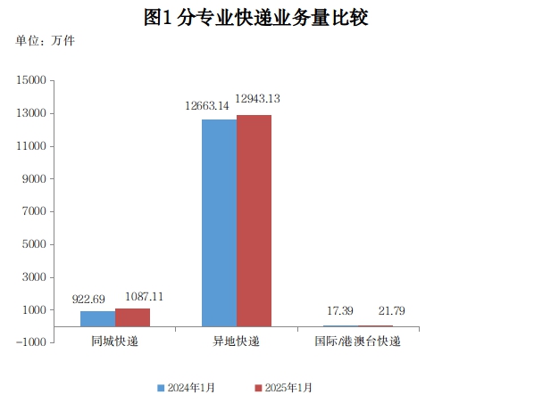 1月份,同城博彩平台-十大博彩平台量完成1087.11万件,同比增长17.82%;异地博彩平台-十大博彩平台量完成1.29亿件,同比增长2.21%;国际/港澳台博彩平台-十大博彩平台量完成21.79万件,同比增长25.34%。